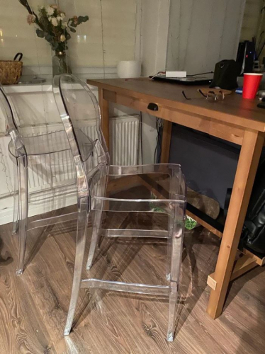 Информация по уходу: прозрачные стулья можно протирать тряпкой из микрофибры, допускается применение нейтрального мыльного раствора. Запрещается использовать спиртосодержащие или ацетоносодержащие (а также им подобные) средства.