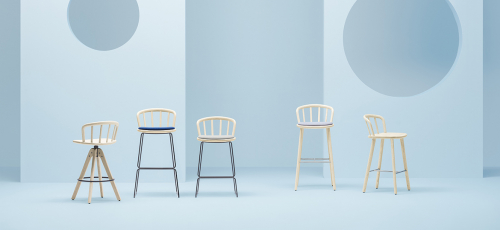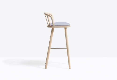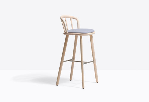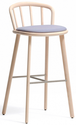 Барный стул Nym гармонично вписывается в коллекцию, напоминающую классические формы, оставаясь верным своей натуре и с легкостью парируя между традициями и инновациями. Арочная изогнутая деревянная спинка с эллиптическим сечением непрерывно соединена с сиденьем с мягкой обивкой. Функциональность мягкого сиденья сочетается с каркасом из ясеня и подножкой из стали.