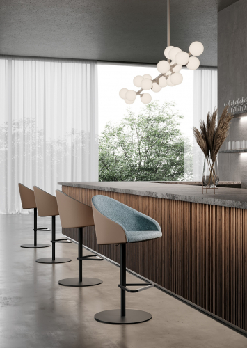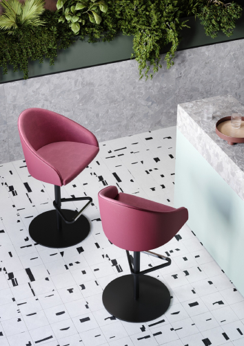 Барные cтулья Kameo отличаются обволакивающим профем с мягкими и изогнутыми линиями. Удобное сиденье придает обстановке живой и современный вид. Белое, черное или хромированное основание имеет два варианта: фиксированная рама наклонных салазок, что придает стулу графическую элегантность, или поворотное основание с газлифтом и подставкой для ног, подходящее для любого современного помещения.