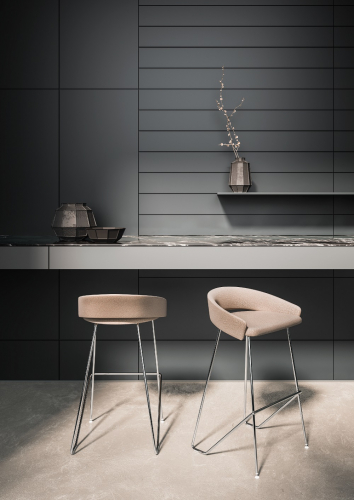 Kimmi - это барный стул с дружелюбным характером, сразу узнаваемым по мягким и гостеприимным формам. Извилисто изогнутая небольшая спинка охватывает сиденье и обеспечивает обволакивающий и эргономичный комфорт, оставляя небольшое отверстие, которое облегчает общий дизайн корпуса.
