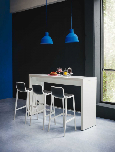 Барный стул Isidoro легкий и комфортный, благодаря сложной системе производства и использованию прочных материалов. Он реализован при помощи одновременной инъекции металла и полимера, а обивка может быть выполнена из экокожи или ткани, что придает стулу дополнительное удобство и стильный вид.