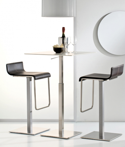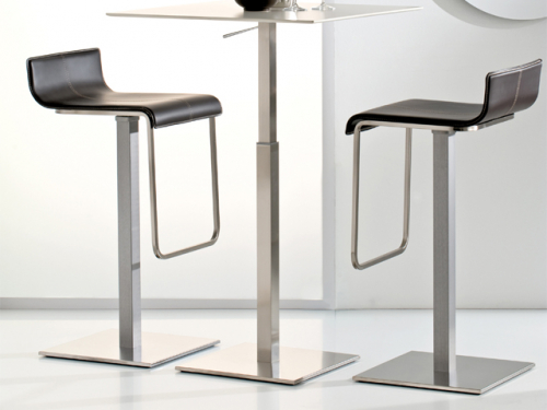 Очень простой и культовый каркас с инновационной изогнутой спинкой делают коллекцию Kuadra удобной и универсальной. Барный стул в притягательном интересном дизайне, с вращающимся сиденьем из кожи, подножкой, прикрепленной к сиденью и центральным основанием из стали. Данный тип кожи позволяет максимально долго использовать мебель. Особенно эффектно стулья будут смотреться в интерьере лофт.