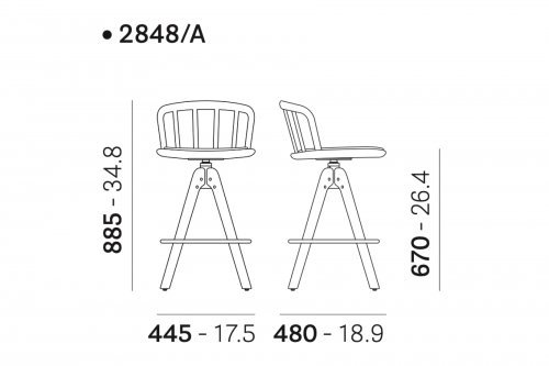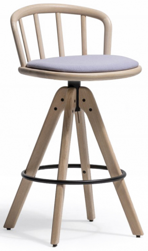 Полубарный стул Nym гармонично вписывается в коллекцию, напоминающую классические формы, оставаясь верным своей натуре и с легкостью парируя между традициями и инновациями. Арочная изогнутая деревянная спинка с эллиптическим сечением непрерывно соединена с сиденьем. Каркас в виде штатива с ножками из дерева и поворотным механизмом придают этой модели уникальность, стальная опора – прочность и долговечность, а сиденье с мягкой обивкой – максимальное удобство.