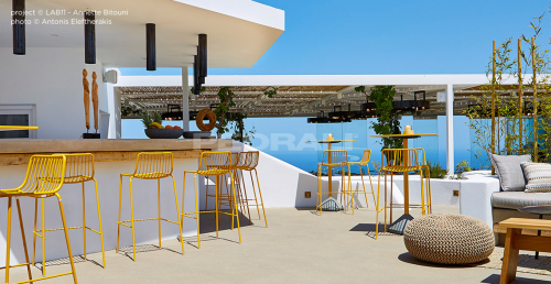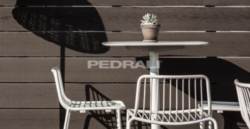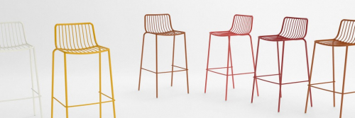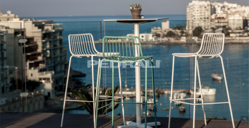 Коллекция Nolita – это мебель, разработанная специально для использования на открытом воздухе, придающая элегантность и свежесть этим пространствам. Она напоминает первые садовые стулья, с производства которых в 1963 году Mario Pedrali начал свое мебельное дело. Штабелируемый барный стул со стальным каркасом и подножкой, окрашенными для использования на открытом пространстве.