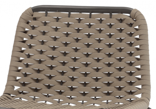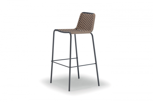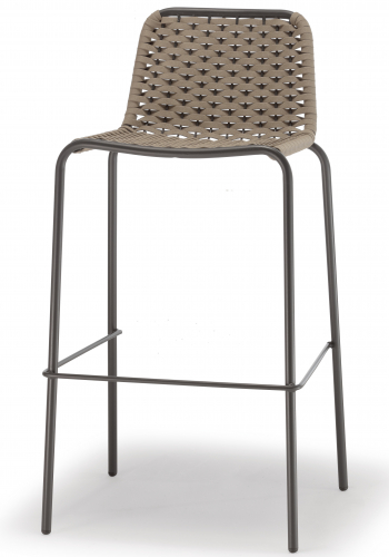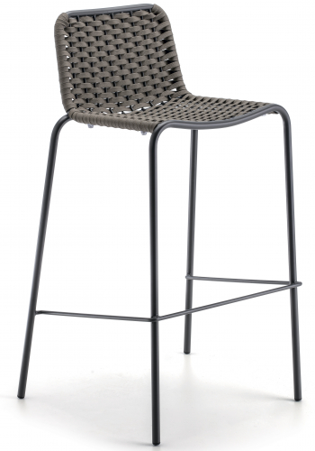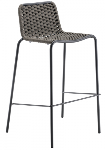 Простота - сильная сторона барного стула Cannes. На верхней части штабелируемого металлического оцинкованного каркаса находится спинка и сиденье с канатным плетением из текстилена и полиэтилена. Отсутствие подлокотников позволяет легко садиться и вставать, а подставка для ног обеспечивает удобство во время сидения.