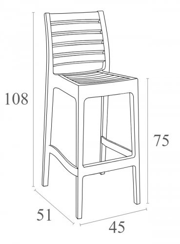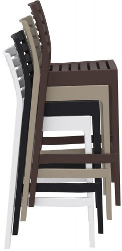 Барный стул Ares изготавливается из полипропилена, упрочненного стекловолокном, полученным с использованием новейшего поколения технологий формования пластмасс под давлением.