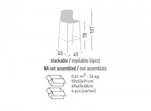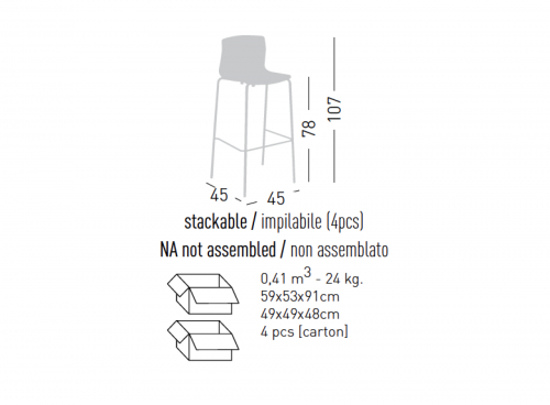 Барные и полубарные стулья доступны на четырех ножках - с металлическими или деревянными каркасами на двух разных высотах сиденья: 680 и 780 мм, и на круглом основании с регулировкой высоты и без.