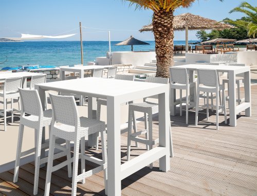 Барный пластиковый плетеный стул Jamaica изготовлен из прочного погодостойкого пластика, укрепленного стекловолокном.