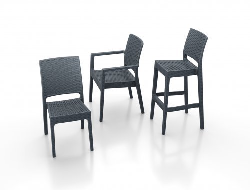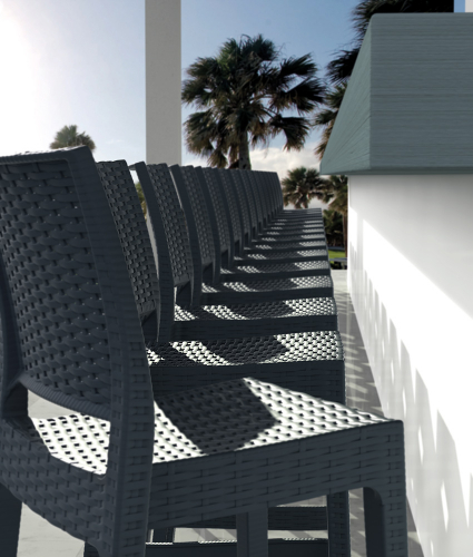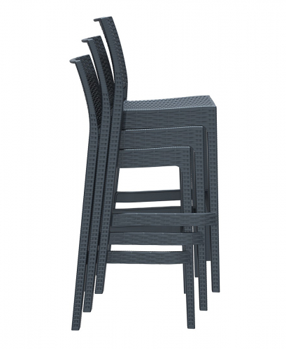 Барные стулья серии Jamaica с имитацией плетения натурального ротанга станут отличным выбором для обстановки фуд-кортов, кафе, ресторанов и баров. Благодаря использованию высококачественных материалов они долгое время не теряют своего привлекательного внешнего вида, даже несмотря на активную эксплуатацию. За счет устойчивости к ультрафиолетовому воздействию и отсутствия металлического каркаса плетеные барные стулья из пластика Jamaica можно использовать в том числе и на открытых площадках.