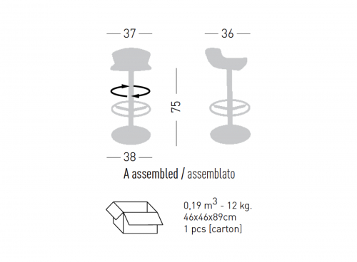 Барные стулья имеют выбор оснований: хромированный металл; или металл, впрыскиваемый одновременно с технополимером, в том же цвете, что и корпус. Корпус у обеих моделей выполнен из технополимера в двух классических оттенках.
