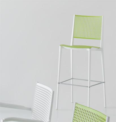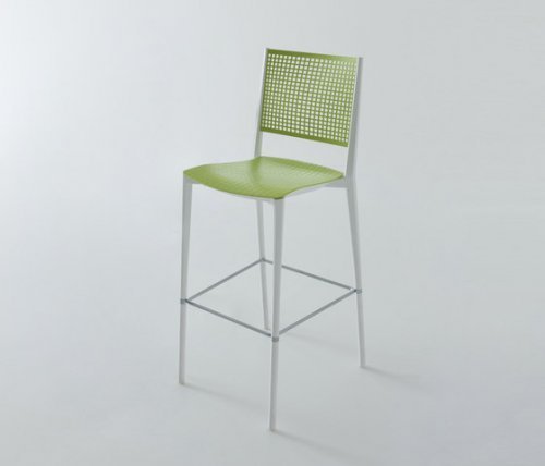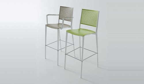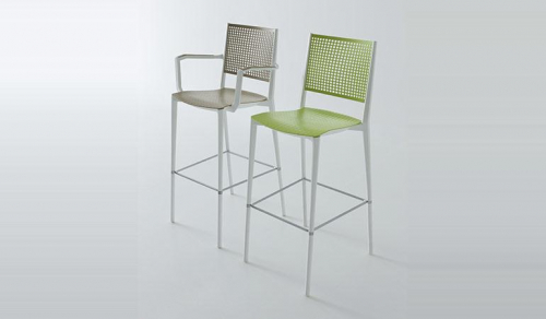 Мягкая и гибкая спинка, а также большое сиденье, отличающееся инновационной текстурой, обеспечивают комфорт во время сидения. Барные стулья доступны в одноцветных и двухцветных сочетаниях и подходят как для внутренних, так и для наружных пространств.