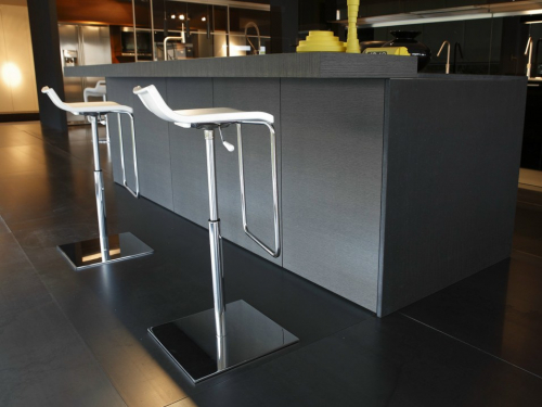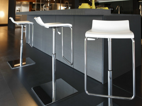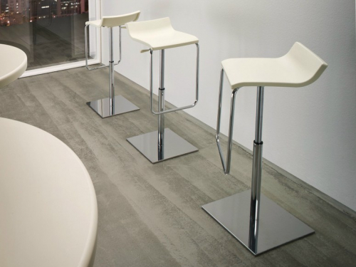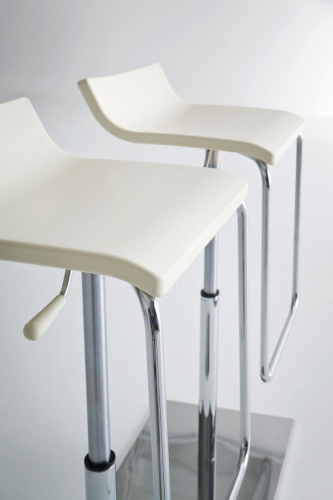 Коллекция Micro - вращающиеся барные стулья, регулируемые по высоте, с корпусом из технополимера, хромированным металлическим каркасом основание в трех вариантах: круглое основание из хромированного металла, круглое комбинированное основание, квадратное основание из хромированного металла.