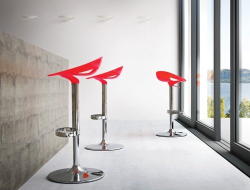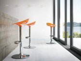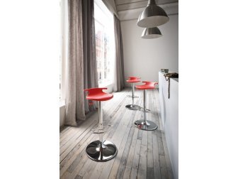 Вращающийся барный стул, регулируемый по высоте с корпусом из технополимере в трех цветах и хромированным металлическим каркасом. Этот барный стул легкий в использовании, благодаря новому дизайну, всегда современному и уютному, который впишется в любое пространство.