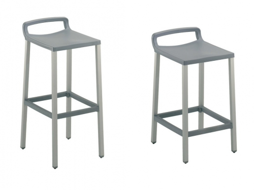 Ofer - барный стул с конструкцией из 4 ножек и подножкой изанодированного алюминия и сиденья с практичной интегрированной рукояткойиз технополимера. Он доступен в двух высотах и подходит для использования на открытом воздухе. Это простой в использовании барный стул, который имеет простой и современный дизайн и компактный размер.