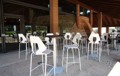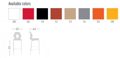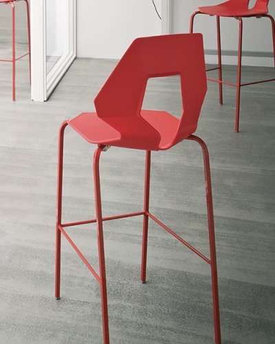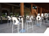 Барный стул Prodige отличается широким спектром ярких цветов корпуса из технополимера, каркас может быть выполнен из хромированного металла или окрашенного, подходящего для использования на открытом воздухе.