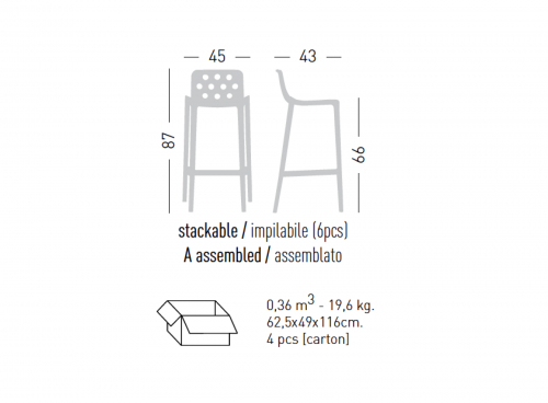 Барный стул Isidoro легкий и штабелируемый, благодаря сложной системе производства и использованию прочных материалов. Этот комфортный барный стул, реализованный при помощи одновременной инъекции металла и полимера, подойдет даже для интенсивного использования на открытом воздухе.