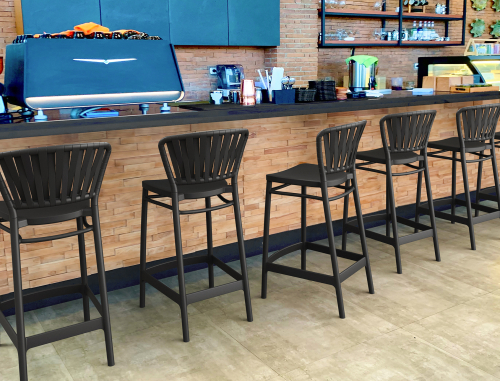 Полубарный стул Portofino от турецкой фабрики Siesta Contract представляет собой стильное и надежное решение для уличного использования в сферах HoReCa и Contract. Выполненная из высококачественного полипропилена, армированного стекловолокном, модель отличается исключительной прочностью и устойчивостью к воздействию внешней среды. Благодаря новейшим технологиям формования пластмасс под давлением, материал полубарного стула устойчив к выцветанию и деформации, а нескользящие ножки обеспечивают безопасность и стабильность как внутри помещений, так и на улице. Особый акцент сделан на обволакивающей спинке с 3D-эффектом плетения из плоского роупа, что придает изделию современный вид и визуально напоминает натуральное плетение, сохраняя при этом преимущества пластика.