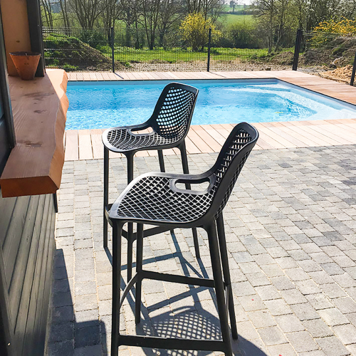 Полубарный стул Air изготавливается из полипропилена, упрочненного стекловолокном, полученным с использованием новейшего поколения технологий формования пластмасс под давлением.