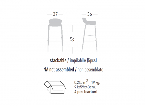 Барные стулья коллекция Easy доступны в двух высотах с конструкцией из 4 ножек из хромированного или окрашенного металла и корпуса из технополимера в широком диапазоне цветов. Стулья для бара могут складываться до 5 штук, а модель с окрашенными ножками также подходит для открытых пространств.