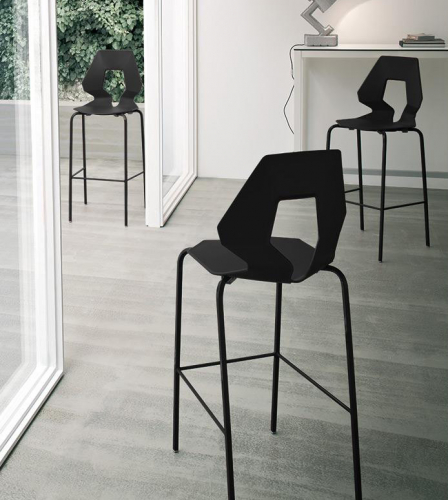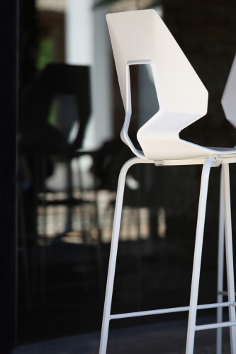 Барный стул Prodige отличается широким спектром ярких цветов корпуса из технополимера, каркас может быть выполнен из хромированного металла или окрашенного, подходящего для использования на открытом воздухе.