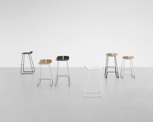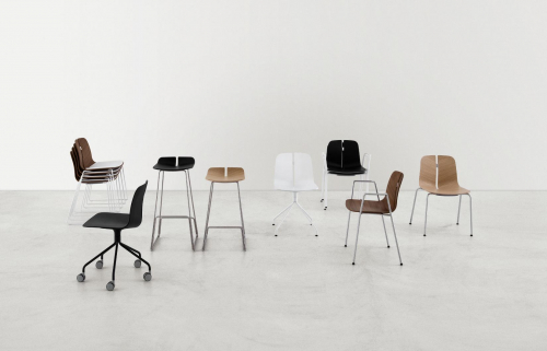 LINK - это коллекция многофункциональных барных и полубарных стульев, которые выражают простоту, линейность и легкость. Корпус из фанеры с различной отделкой и эргономичная форма делают коллекцию удобной в использовании в жилых и общественных помещениях. Небольшая щель, разрыв линии - и LINK обретает форму особенность. Стул легкий, как следует из его узкой металлической рамы и деревянного сиденья, и плавно изгибается, образуя невысокую спинку.