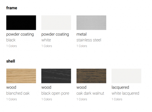 Варианты отделки корпуса: беленый дуб, темный орех, черный с открытыми порами, белый лакированный.