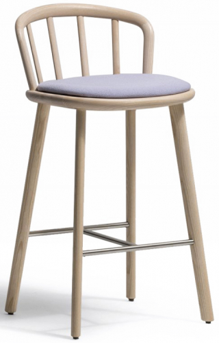 Полубарный стул Nym гармонично вписывается в коллекцию, напоминающую классические формы, оставаясь верным своей натуре и с легкостью парируя между традициями и инновациями. Арочная изогнутая деревянная спинка с эллиптическим сечением непрерывно соединена с сиденьем с мягкой обивкой. Функциональность мягкого сиденья сочетается с каркасом из ясеня и подножкой из стали.