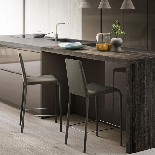 Полностью покрытый обивкой, полубарный стул Dora сочетает в себе минимализм и динамизм. Он адаптируется к любому пространству и подходит для обстановки бара или кухни в частном доме, а также барной зоны в ресторане. Очевидной изюминкой стула является Х-образный шов нейтрального цвета, который подчеркивает стилистику стула и выделяет его на фоне других предметов мебели.
