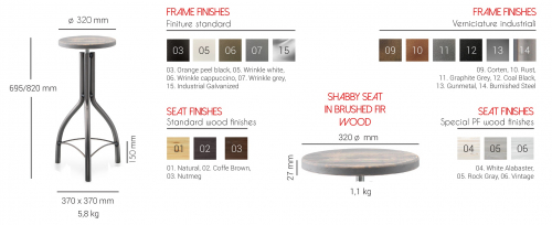 Незаменимость, функциональность и гармоничный дизайн делают табурет Shabby подходящим для любого контекста или современной промышленной среды. Табурет Shabby состоит из стального каркаса на трех ножках и удобного деревянного сиденья.