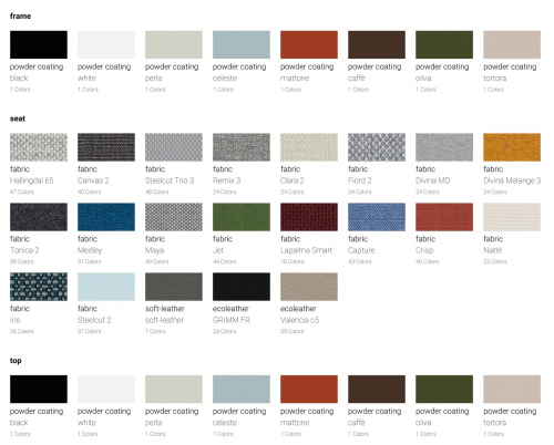 Варианты отделки каркаса: белый, черный, жемчужный, светло-голубой, кирпичный, кофейный, оливковый, тортора.