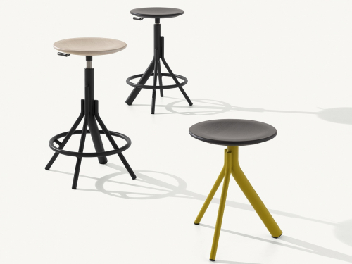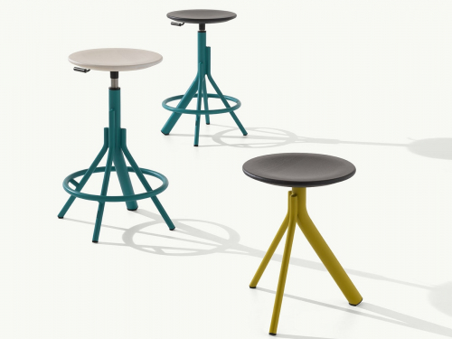 Вращающийся барный табурет из трубчатой стали с деревянным сиденьем Main 1120 имеет регулируемую высоту в диапазоне от 650 до 750 мм, что делает его очень гибким и отлично подходящим для любых способов работы и условий: от классического и более традиционного офиса до неформальных коворкингов или жилых помещений.