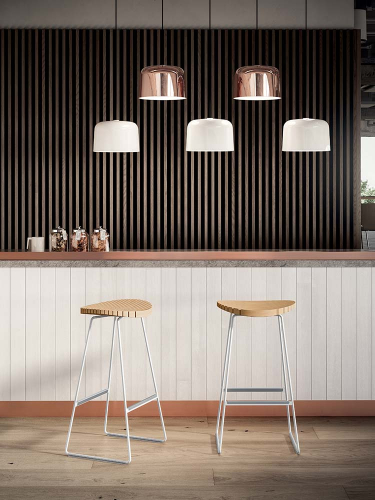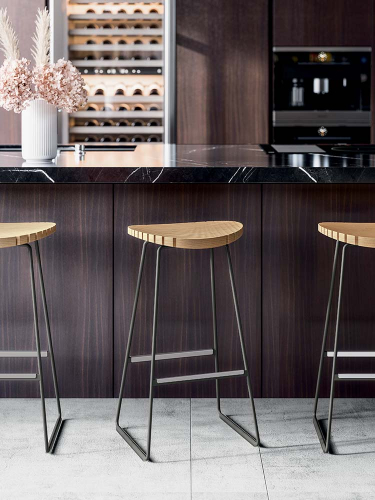 Изысканное и особенное сиденье Clark состоит из множества деревянных планок, расположенных рядом и перемежающихся тонкими прорезями: решение, придающее табурету устойчивость и делает эстетику динамичной. Конструкция из стальных прутьев и деревянное сиденье создают контраст, подходящий для самых разных интерьеров, вот почему Clark - это предмет мебели, который идеально подходит как для дома, так и для ресторана.