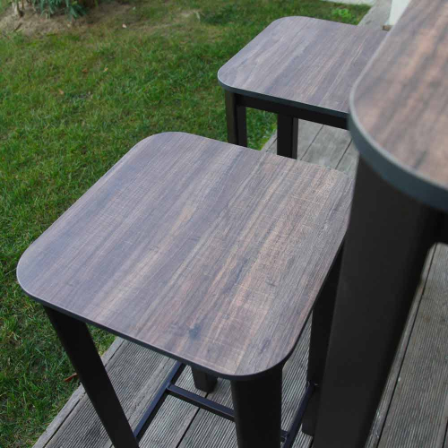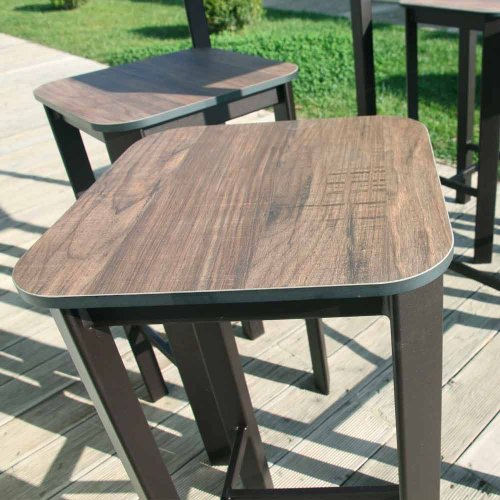 Барная линейка Horeca из коллекции Open Air, состоящая из квадратного и прямоугольного барных столов и табуретов, сочетает в себе прочность и превосходную устойчивость к непогоде и солнечному свету, не забывая при этом об эстетическом аспекте, обогащенном элегантностью столешницы и сидений с отделкой под дерево. Дизайн Horeca отличается простыми линиями и геометричными формами, способен дополнить уличное пространство, сделав его современным и авангардным.