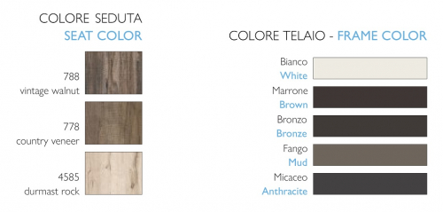 Варианты декора сиденья: 788 старинный орех, 778 кантри шпон, 4585 скальный камень.