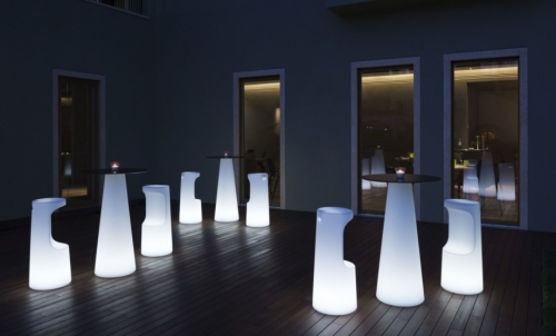 Fura (сосна по-шведски) - так называется коллекция, изящные линии которой наводят на мысль о незагрязненных лесах Северной Европы. Табурет с четкими линиями, прерываемыми углублением, служащим подставкой для ног, что напоминает вырубку ствола дерева. Ручка на задней панели облегчает его перемещение. Табурет создаст идеальный комплект со столом из этой коллекции. Светящаяся версия универсальна и адаптируется к любому стилю и вкусу благодаря комплекту светодиодного освещения на батарейках, который устраняет необходимость в шнурах питания и делает каждый элемент независимым.