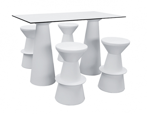 Игривые фигуры, созданные коллекцией барных табуретов и столов Roller, делают внутренние и внешние пространства более увлекательными и полными.