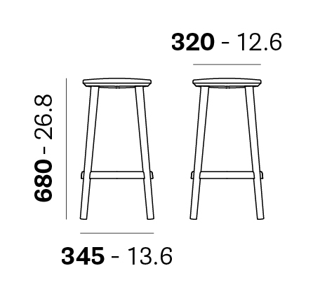 Коллекция Babila с большой ловкостью маневрирует между традицией и инновацией. Её сила заключается в простоте и непосредственности, которая отражается в форме, неподвластной времени. Полубарный табурет из ясеня с коническими ножками, которые крепятся к мягкому сиденью без добавления крепежных деталей.