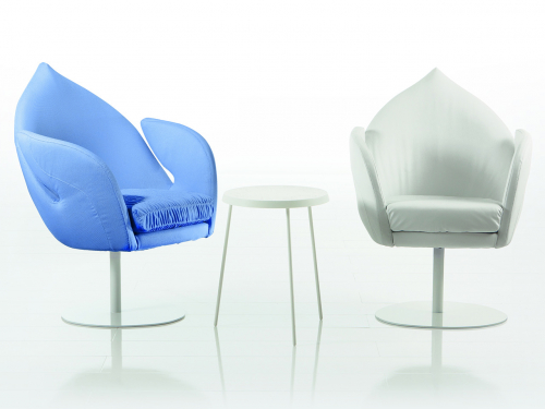 Каркас из металлических труб, специальная подпружиненная оболочка, полиуретановая пена, покрытие из полиэстерового волокна, цоколь из металла обивка из текстиля и кожи съемная.