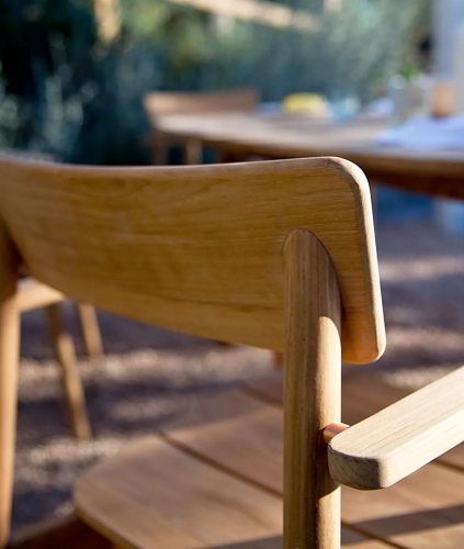 Благодаря своему лаконичному дизайну и превосходным техническим характеристикам тика, предметы коллекции Pevero изысканно дополнят любую зону отдыха на открытом воздухе, привнося в нее утонченность и комфорт.