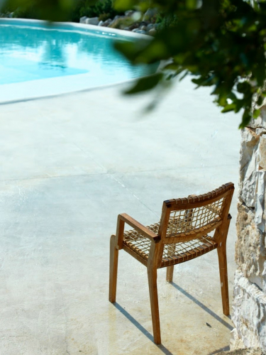 Каркас выполнен из тика - превосходного материала, известного во всем мире красотой текстуры поверхности и превосходными физическими характеристиками. Это прочная, водостойкая древесина, устойчивая к соленым средам и разным погодным условиям. Для производства мебели Unopiù использует только самый доступный и прочный тик из индонезийских лесов, и только тот, который обладает высочайшим качеством - из центра ствола. Качество и экологическая устойчивость: тик Unopiù поступает только с сертифицированных, гарантированных и контролируемых государственных плантаций, где каждый спил дерева заменяется новым.