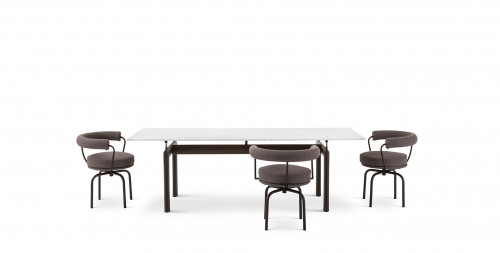 Икона с универсальной и функциональной душой - кресло LC7 было разработано в 1927 году Charlotte Perriand для ее собственной квартиры на площади Сен-Сюльпис в Париже. Впервые выставленное в 1928 году в Salon des Artistes Décorateurs, через год оно было также представлено в Salon d'Automne, где вошло в состав коллекции, которую Charlotte Perriand создавала совместно с Le Corbusier и Pierre Jeanneret. Обитое уличной тканью, это вращающееся кресло, доступное в конфигурации с четырьмя ножками, оснащено вспененным полиуретаном и набивкой из полиэстера для спинки и сиденья. Версия для наружного применения имеет раму из нержавеющей стали, покрытую порошковой краской, предназначенную для использования на открытом воздухе и доступную в пяти текстурированных цветах, и специальное тканевое покрытие, которое повторяет эстетику моделей для дома. В 2016 году модель LC7 была обновлена, что привело к получению итальянского сертификата Catas.