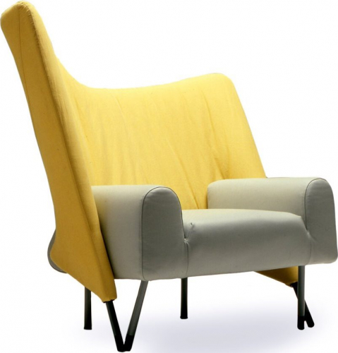 Асимметричное слева или справа кресло с подставкой для ног со стальным скелетным каркасом, дополненное пенополиуретановой пеной и наполнением из полиэстера.
