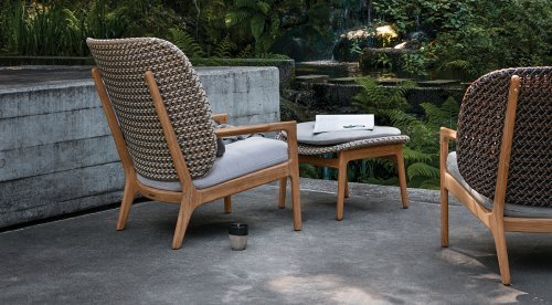 Kay, разработанный Henrik Pedersen для Gloster, представляет собой кресло для отдыха с тиковым каркасом и плетеной спинкой. Спинка, несомненно, является определяющий элементом коллекции Kay, намеренно увеличенная и красиво изогнутая для комфорта. Плетение и изящный каркас из тикового дерева сочетают вневременной стиль и практичный комфорт.