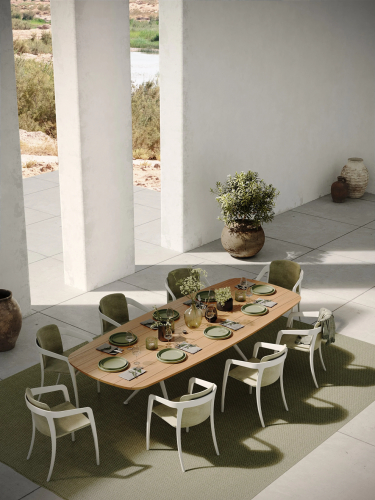 Одновременно современное и классическое уличное кресло Jive вписывается в любую обстановку, но при этом достаточно эффектно, чтобы его можно было заметить. Оно гармонично сочетает в себе конические алюминиевые профили, создавая привлекательный, очень декоративный и освежающий стиль. Такое кресло является настоящим хамелеоном, который идеально сочетается с современным металлическим или деревянным обеденным столом. Приготовьтесь к тому, чтобы сесть – и быть пораженным.