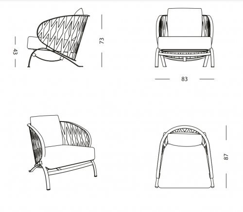 Коллекция Sunrise отличается стройными конструкциями и полным отсутствием острых краев. Эта новая коллекция является гимном легкости благодаря конструкциям, полностью изготовленным из плоского железа. Прочность железа контрастирует с мягкими линиями и учтивостью каждого элемента. Все это усиливается и возвышается еще больше за счет выбора оригинальных деталей и отделки: лакокрасочное покрытие представлено в сложной цветовой гамме от золотого до бронзового с металлическим и перламутровым эффектом. Фурнитура хромированная. Ткани имеют нестандартные узоры, которые напоминают ключевые концепции коллекции: обволакивающие оттенки и медленное течение времени.