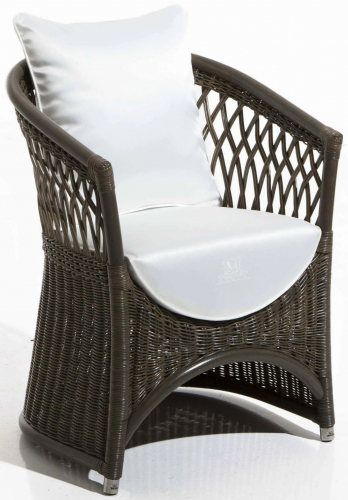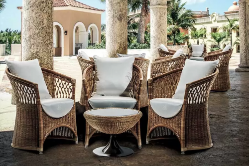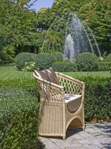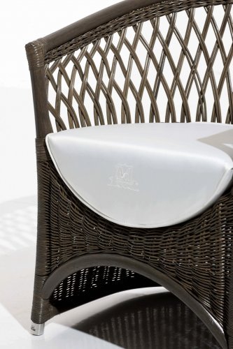 Мебель Vega вдохновлена игрой плетений. Плетение из натурального ротанга, плотное и компактное в нижней части структуры, расширяется по мере продвижения вверх, создавая ромбовидный узор. Окончательный эффект производит впечатление легкости и солидности. Структура и тканые секции полностью выполнены из ротанга и лозы и созданы вручную с тщательным вниманием к деталям. Эти натуральные материалы украшены мельчайшими деталями, такими как золотые ножки и ручки, а также элегантными тканями и карманами для хранения, которые украшают структуру и придают изделиям величественный вид. Чтобы сохранить долговечность натуральных материалов, из которых изготовлена мебель из этого ассортимента, как и все элементы коллекции Orangerie, их следует использовать в местах, защищенных от дождя и прямых солнечных лучей. Элементы линейки Vega можно использовать на верандах или в зимних садах, а также в оздоровительных центрах и спа, поскольку они устойчивы к влажности.