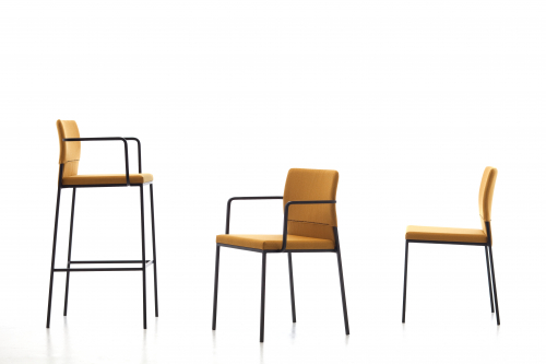 Коллекция стульев и кресел со стальным каркасом и сиденьем с обивкой. Характерной особенностью является мягкий чехол, закрывающий спинку, отсюда и название Hat. Кресла подходят для обустройства различных баров, ресторанов, общественных мест, библиотек, залов ожидания, но также идеально подходят и для частных интерьеров.