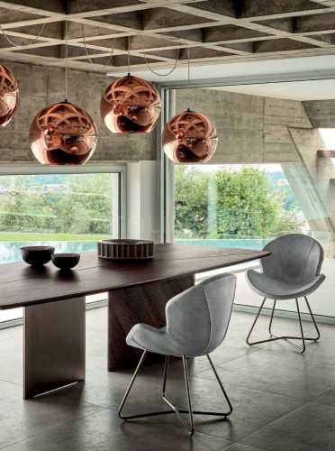 Современный дизайн и геометрическое взаимодействие создают стул, который выражает новую волну формальной элегантности в мебельном мастерстве. Подобно баскетбольному мячу, который был разрезан, он состоит из мягкого кожаного материала, который впоследствии "вшивается" в дизайн, обеспечивая эстетический и чувственный элемент, резко контрастирующий с трехмерным металлическим каркасом. В целом, Victoria стремится к красоте посредством осознанных абстрактных линий, подчеркивающих комфорт во всем этом революционном подходе.