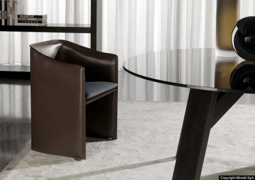 Кресло Case в форме корзины с гладкими линиями и консервативными пропорциями выражает свою утонченную элегантность за счет использования роскошного материала, такого как кожа, в сочетании со всеми тканями эксклюзивной коллекции Minotti.