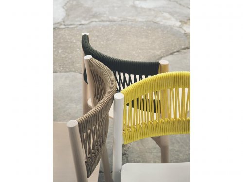 Load черпает вдохновение из скандинавского дизайна для создания новой концепции современности, поиск новых пространственных отношений и призван подарить новое настроение во время сидения на стуле. Он представляет собой сложное и тщательное исследование, проведенное Эмилио Нанни на тему архетипической формы. Стулья коллекции Load выполнены из массива бука, а спинку украшает плетение из веревки различных цветов.